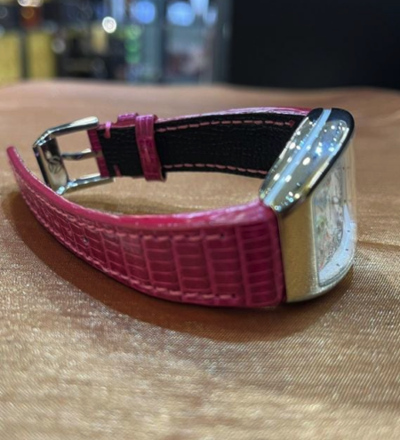 April 12, 2024 AP Havana serviced, polished with a brand new custom red crocodile leather strap waiting be attached.
