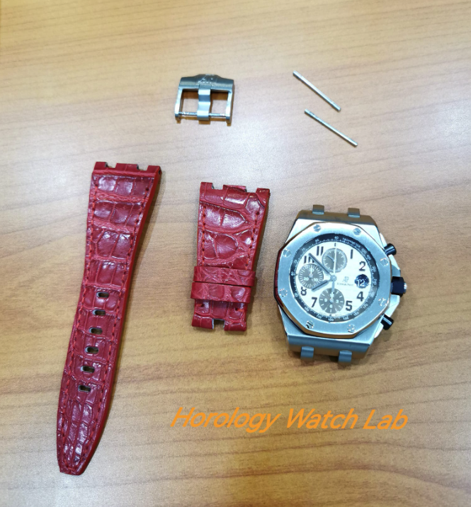 AP Havana serviced, polished with a brand new custom red crocodile leather strap waiting be attached.