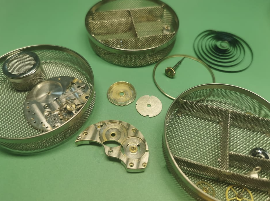 Getting ready for a second machine cleaning process after inspecting all the damaged parts.....hopefully all works after assembling as there were non original parts like the mainspring that was previously installed, finding an original new one seems impossible.