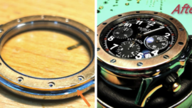 De-casing a JLC Reverso before laser welding followed by a good polish to look as new.